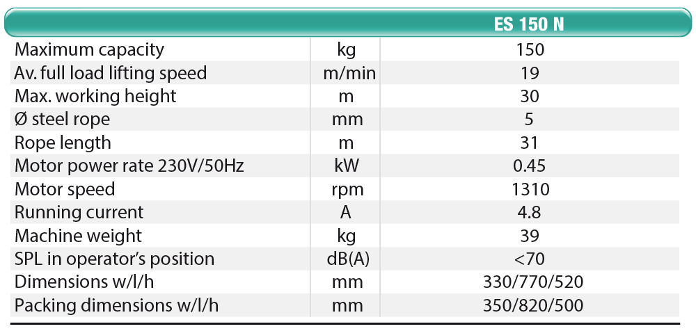 Ideal for operations that do not require frame extension. It can lift materials up to 150 kg.