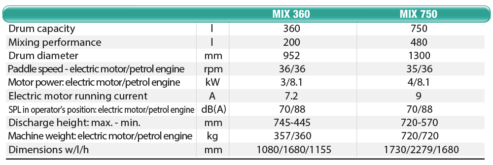 Mortar mixers with high production capacity. Drum capacity 360/750 l.