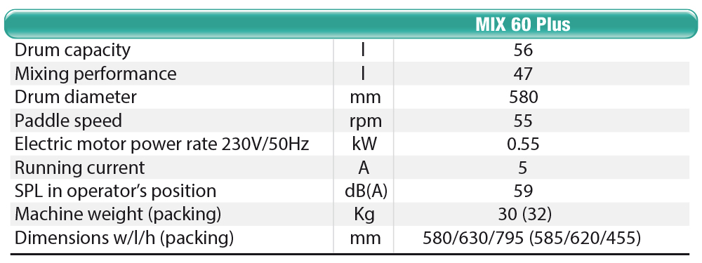 Lightweight, compact and very quiet mortar mixer. Ideal for small building sites or refurbishment work. Drum capacity 60 l.