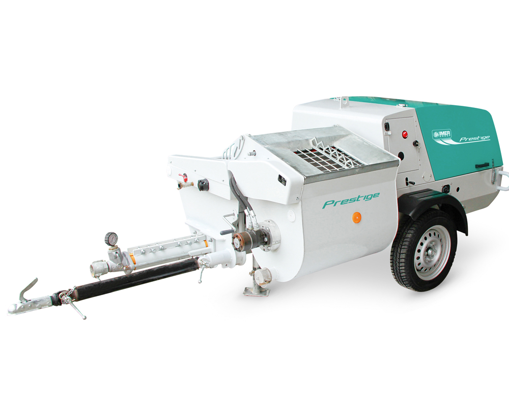 For mixing and spraying plastering mortars in bags or from silo: premixed materials, gypsum base premixed materials, insulating plasters, lightened materials, self-levelling screeds.