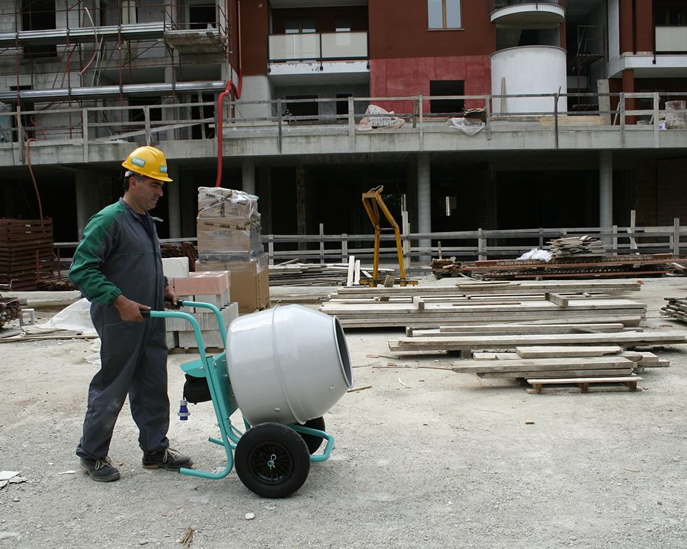 It is the lightweight, compact concrete mixer easy to transport, ideal for small building sites or refurbishment work. Its construction features make it suitable for professional use.
