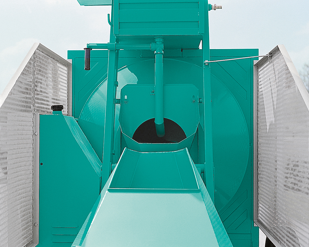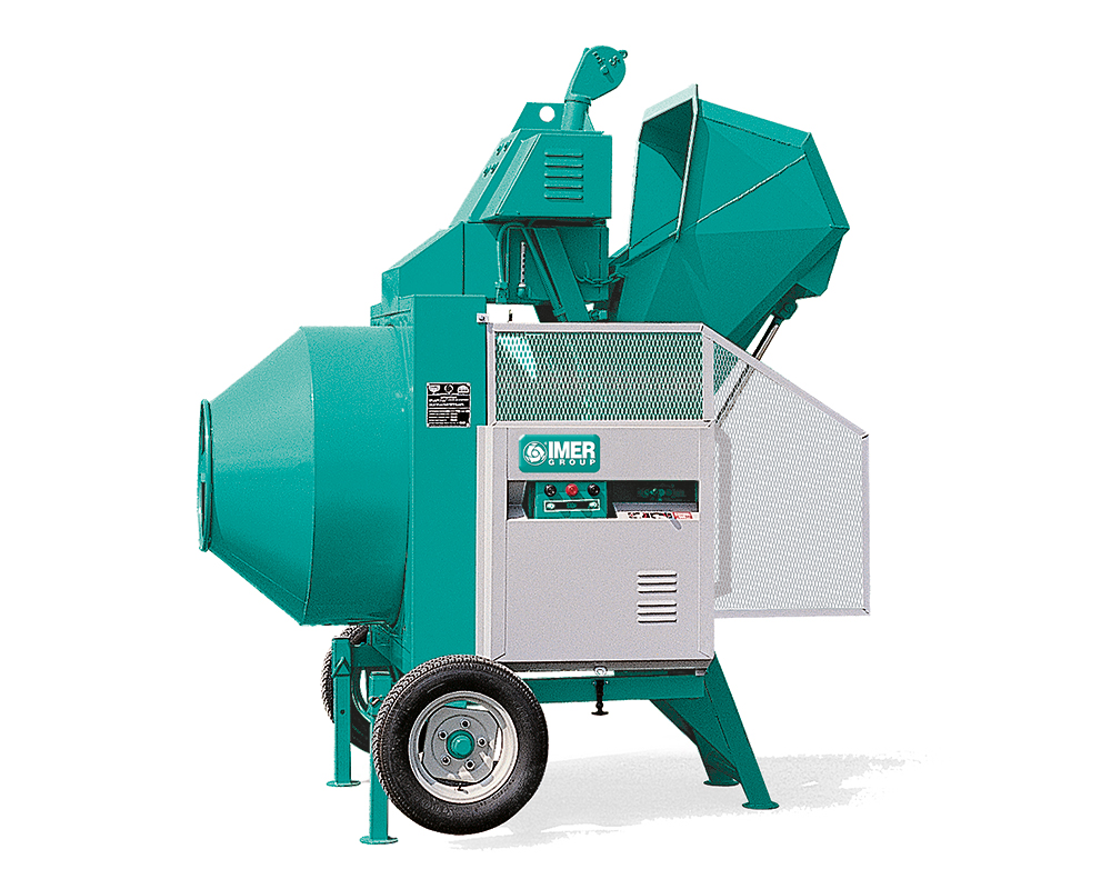 Reversing drum concrete mixers. Able to offer high hourly production of concrete. It is ideal for big building sites.