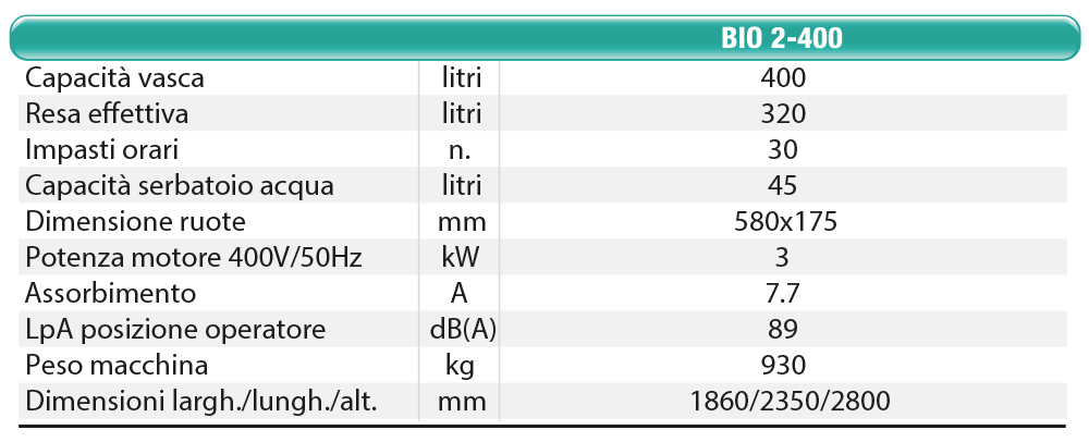 BIO 2-400 is designed for big building sites. The scraping shovel loading system allows to get a concrete hour production up to 8 m./h.