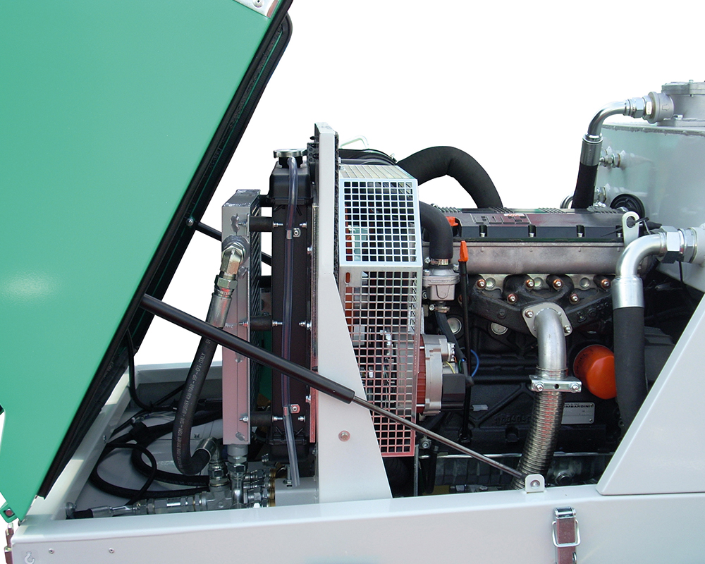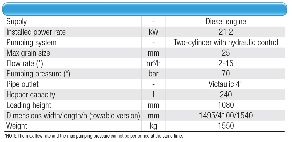 2-cylinder piston pump, hydraulic driven. Diesel engine. Ideal for pumping concrete and self levelling floor screeds and for shotcreting.