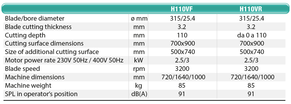 Suited to many applications and needs of wood carpentry cutting at the construction site. The adjustable cutting height (H110VR) and installed power (single-phase and three-phase motors) make it possible to work on wooden planks, site panels and wooden or laminar structural works. Transmission with two trapezoidal belts to reach a max. 110-mm cutting height without transferring motor vibrations to the blade.