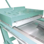 The combined cutting action between the downward movement of the cutting head and the horizontal movement of the carriage allows higher speed and accuracy in cutting on large materials or on grooves and profiles. Starting in two steps on the three-phase version (start and run) ensures reliability and durability. The machine is fitted with an emergency button with reset.